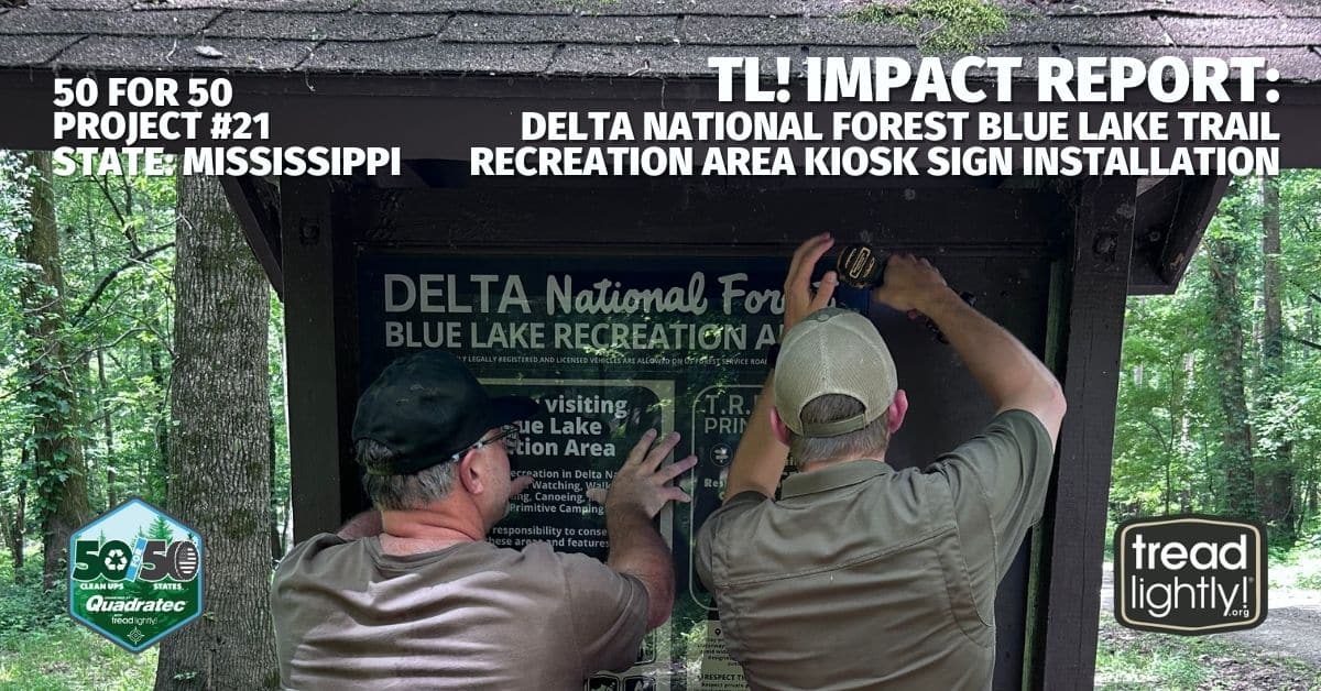 Project: Delta National Forest Blue Lake Trail Recreation Area Kiosk Sign InstallationProject #21/50State: Mississippi Description: This project was funded by...