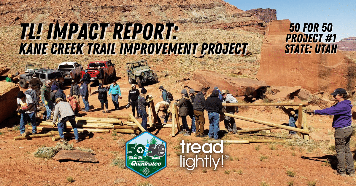 Project: Kane Creek Trail ImprovementLocation: Moab, UtahProject #1/50State: Utah Description: This project was funded by the Quadratec 50 for 50...