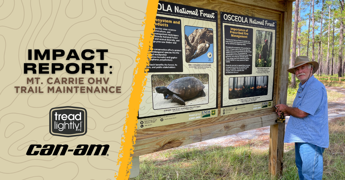 Project: Mt. Carrie OHV Trail MaintenanceLocation: Florida Description: This project was funded by Can-Am Off-Road. Can-Am has committed to funding...