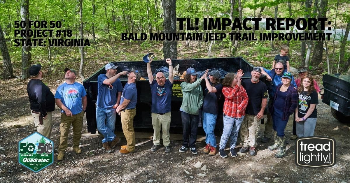 Project: Bald Mountain Jeep Trail ImprovementProject #18/50State: Virginia Description: This project was funded by the Quadratec 50 for 50 Initiative....