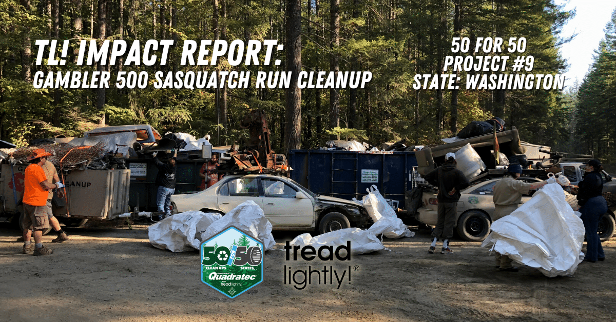 Project: Gambler 500 Sasquatch Run CleanupLocation: Olympic National Forest, WashingtonProject #9/50State: Washington Description: This project was funded by the Quadratec...