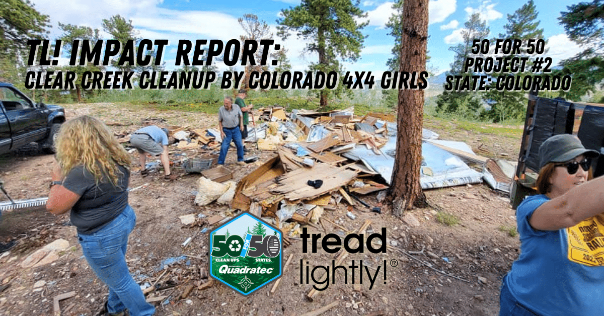 Project: Clear Creek CleanupLocation: Clear Creek Ranger District, ColoradoProject #2/50State: Colorado Description: This project was funded by the Quadratec 50...