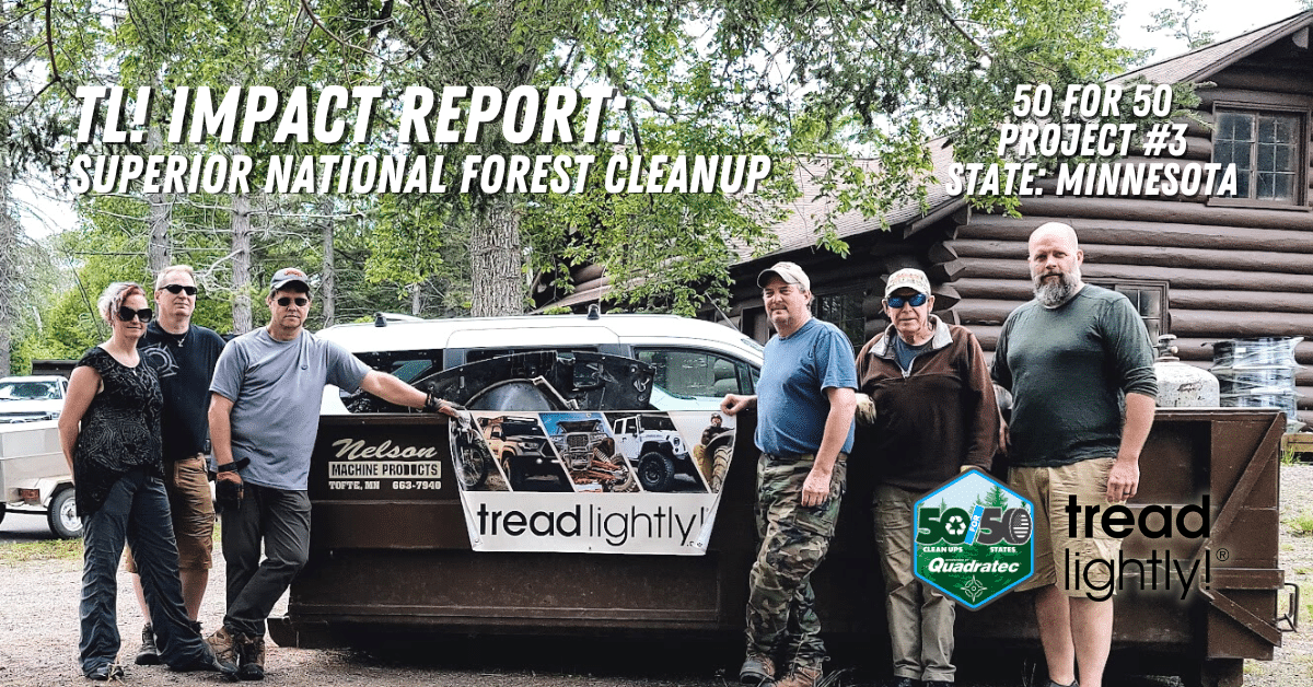 Project: Superior National Forest Cleanup by Tread Lightly Off Road ClubLocation: Superior NF, MNProject #3/50State: Minnesota Description: This project was...