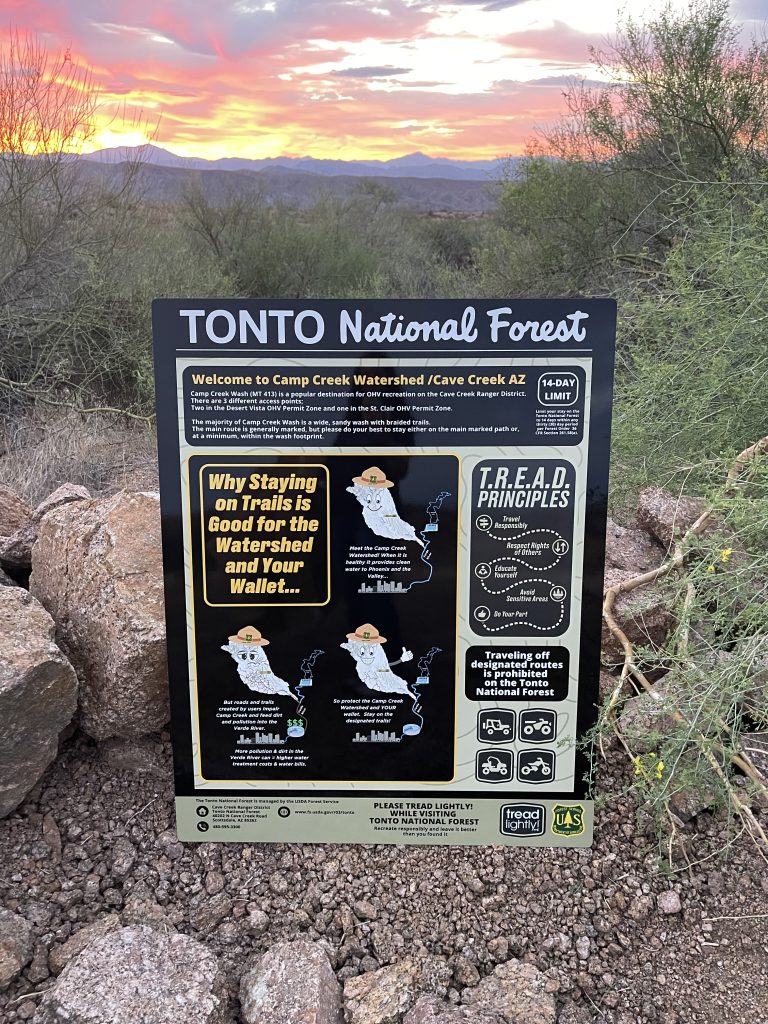 The kiosks were placed at key OHV trailheads and riding areas to help protect sensitive watershed areas nearby. The Camp Creek Watershed is a critical watershed that feeds into Phoenix drinking water making this educational piece of utmost importance.