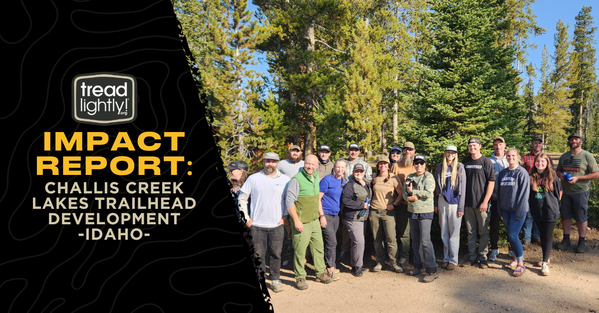 Description: On September 6, 2025, 19 volunteers collaborated with Tread Lightly!, Idaho Parks and Recreation, Salmon-Challis National Forest, Idaho Single Track Alliance and the Mountain West Recreation Alliance to establish a new trailhead and staging area for the Challis Creek Lakes technical 4×4 route in Central Idaho.