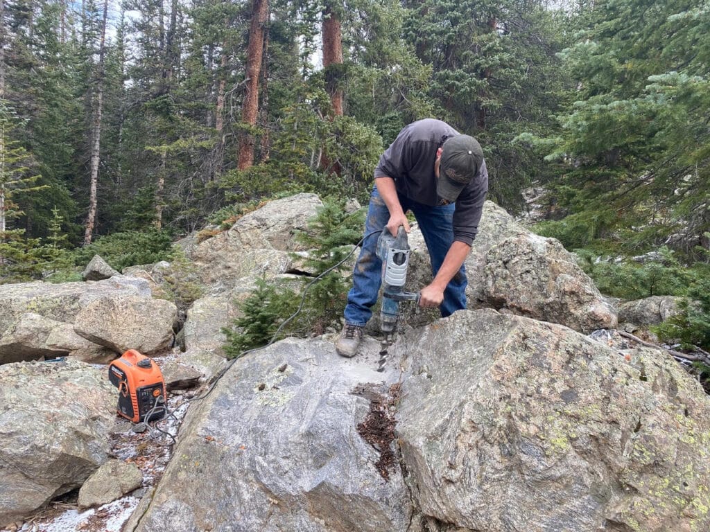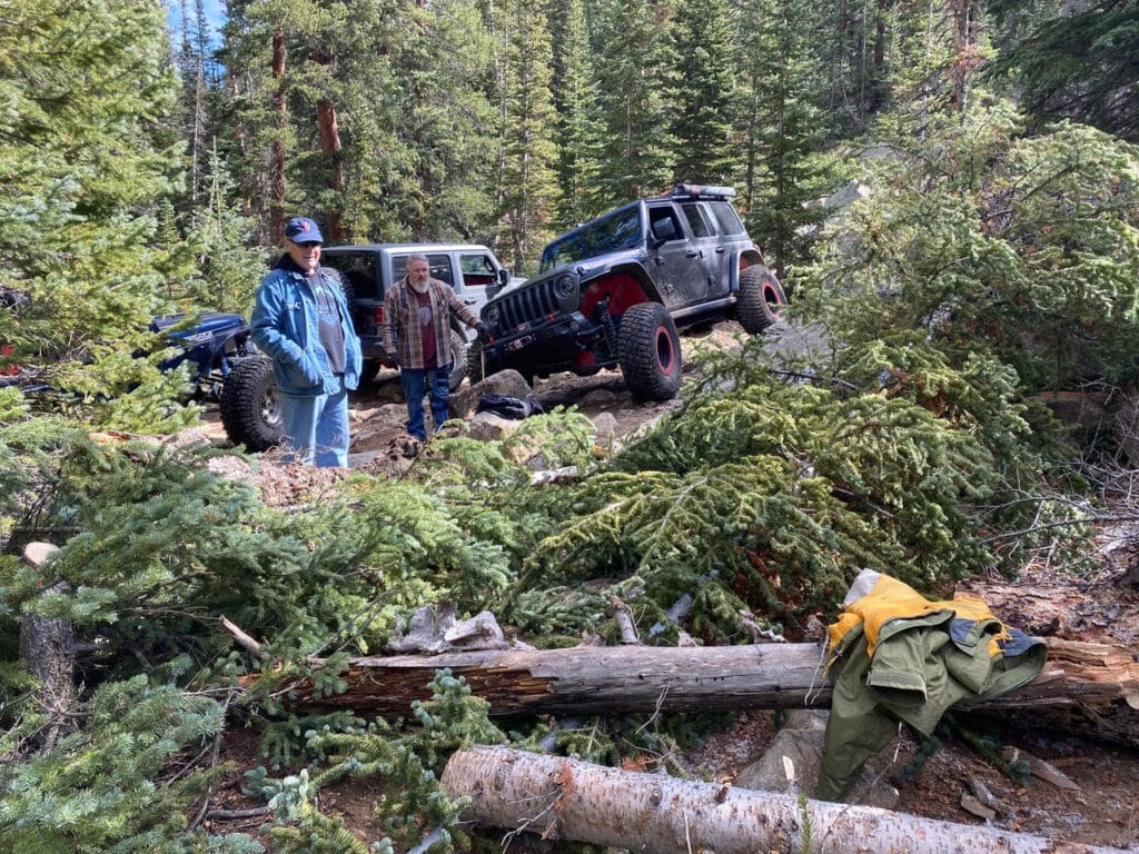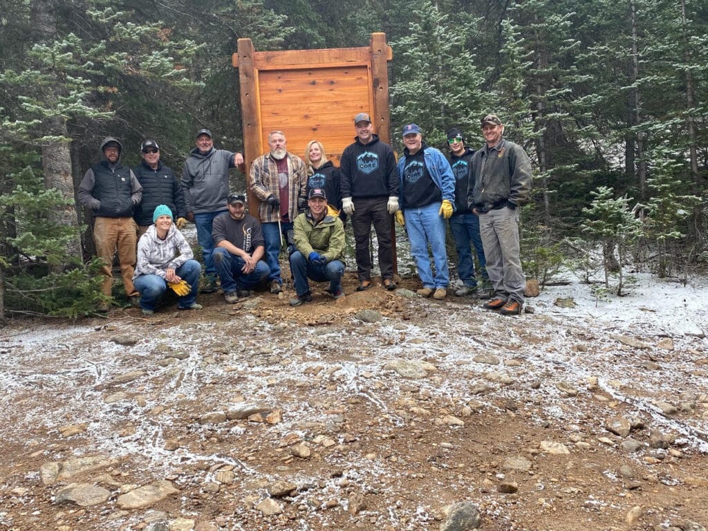 On October 10, 2021, 12 volunteers from the Colorado Offroad Enterprise worked together on the Iron Mike Mine Trail in the San Isabel National Forest. To help protect the Iron Mike Mine Trail from permanent closure, CORE dug holes and cemented a kiosk frame in for a sign panel to be placed next summer and hand cleared water bars and reinforced trail drainage and used a suitcase generator and hammer drill to install a winch anchor. This work allows all users to enjoy the trail but keeps the difficult experience intact. CORE also used a chainsaw to slash and block an off-trail bypass route around the obstacle they placed a winch anchor at. Signs were installed to remind users to use the winch anchor if needed and to stay on the trail. Five miles of trail were improved.
