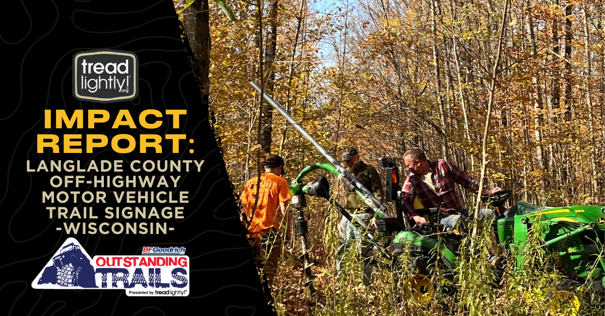 “Thank you to our partner BFGoodrich Tires Outstanding Trails Grant program to help fund directional and location signs along the trail system. It is rare that new OHMV trails become available, but thanks to the Langlade County Forest and the multi-year effort of 4 Lakes 4 Wheelers, this new OHV trail system is open and active. Thanks to all of the volunteers who have helped to make this happen and for the collaborative effort of all those involved to help not only Protect the Adventure, but to also help create new Adventures!”- Lowell Eckart, Southeast Program Manager, Tread Lightly!