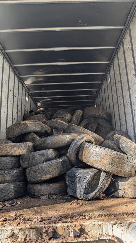 Throughout the afternoon, participants focused on sorting, staging, and loading discarded tires that had accumulated across the district. With the help of a large trailer provided by Liberty Tire, the team successfully removed a total of 418 tires from the forest. Each tire removed represented one less hazard to wildlife, a reduced risk to local waterways, and improved access and safety for public land users.