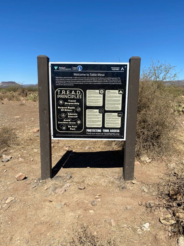 Description: On March 29, 2021 Tread Lightly! employees, partners and volunteers installed educational signage at the Table Mesa Recreation Areas in Arizona